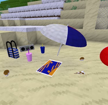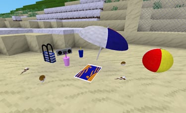 What you need for the beach. A beach ball for some fun. An umbrella to protect you from the sun. A few more items to make your day at the beach fun.