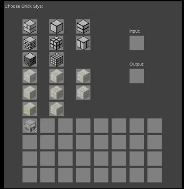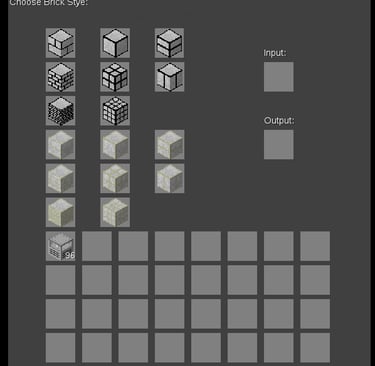 mybricks adds lines to many blocks to make them look like bricks. You make a brick machine, add the blocks you want turned into bricks, click the style of brick you want and take your bricks.