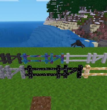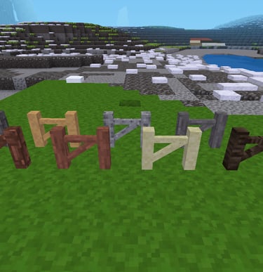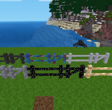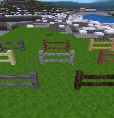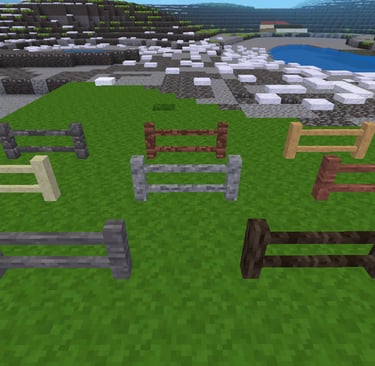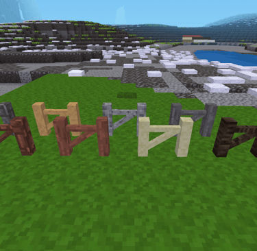 fences, fence rails and gates made of default material. It includes cobble, desert cobble, stone, desert stone, sandstone, desert sandstone, gravel and tree.