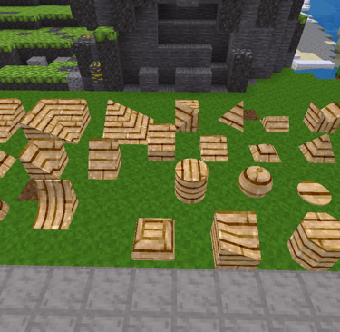 To use simply craft a mesh machine. Then put in the block you want made into a shape and click what style you want.
