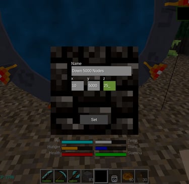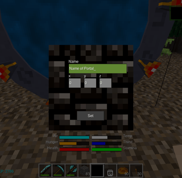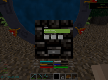 My Portal is a one way portal. You place the portal and then enter the name and coordinates. Walk through it and it will take you to where you want to go. It is good to have 2 so you can set a portal to go back to where you was. When you enter the coordinates make sure you use a negative number for y to go down or you might end up high in the sky.