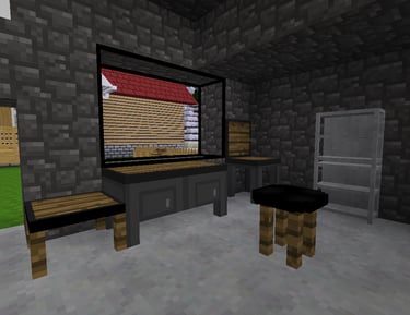 Work Bench with storage and a work table. There is a stool and a short table. Just a few things to add to your workshop.